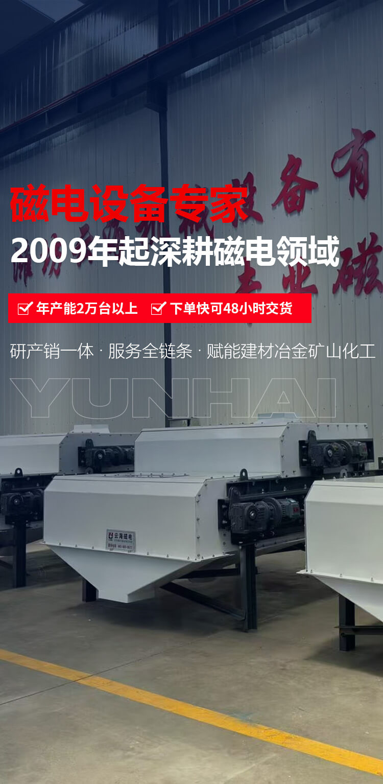 濰坊云海機(jī)械設(shè)備有限公司始建于2009年,是生產(chǎn)磁電機(jī)械設(shè)備的廠家。系生產(chǎn)建材、冶金、礦山、化工等行業(yè)微機(jī)自動(dòng)化、檢測、控制專用設(shè)備的公司。主要產(chǎn)品工業(yè)自動(dòng)化配料系統(tǒng)、電磁永磁除鐵器、永磁磁選機(jī)、電磁振動(dòng)給料機(jī)、皮帶螺旋輸送機(jī)、電磁滾筒、破碎機(jī)、包裝機(jī) 、除塵器等系列產(chǎn)品。